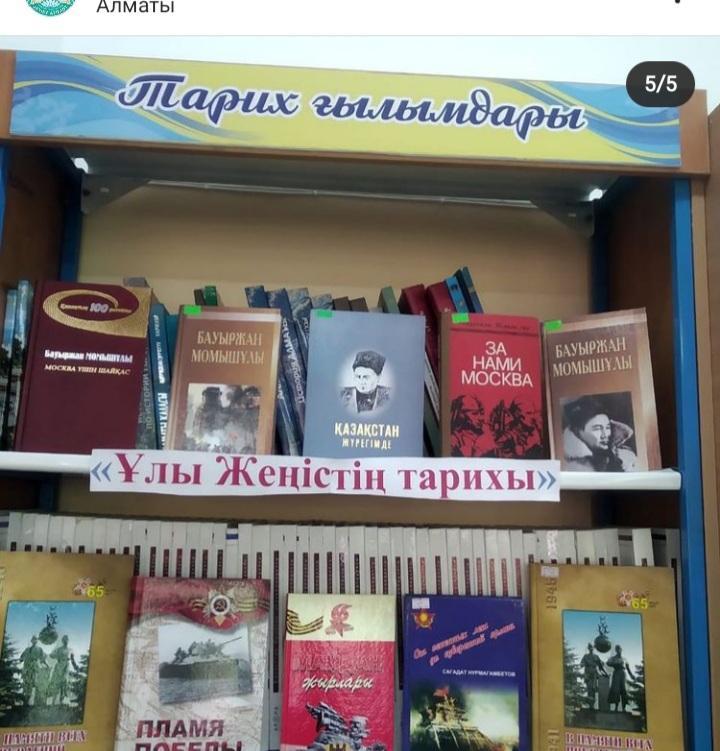 Жеңіс күніне орай Алматы қаласы Жетісу ауданы №110 мектеп-гимназиясы «Ұлы Жеңістің тарихы» атты кітап көрмесін ұйымдастырды.