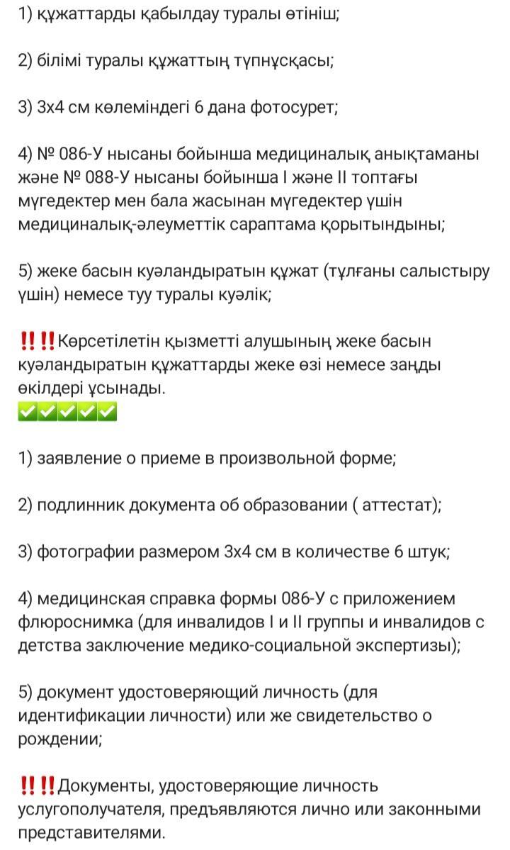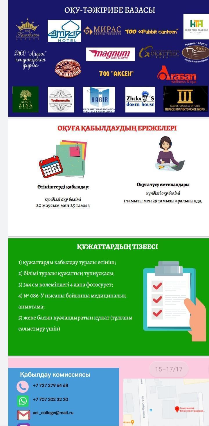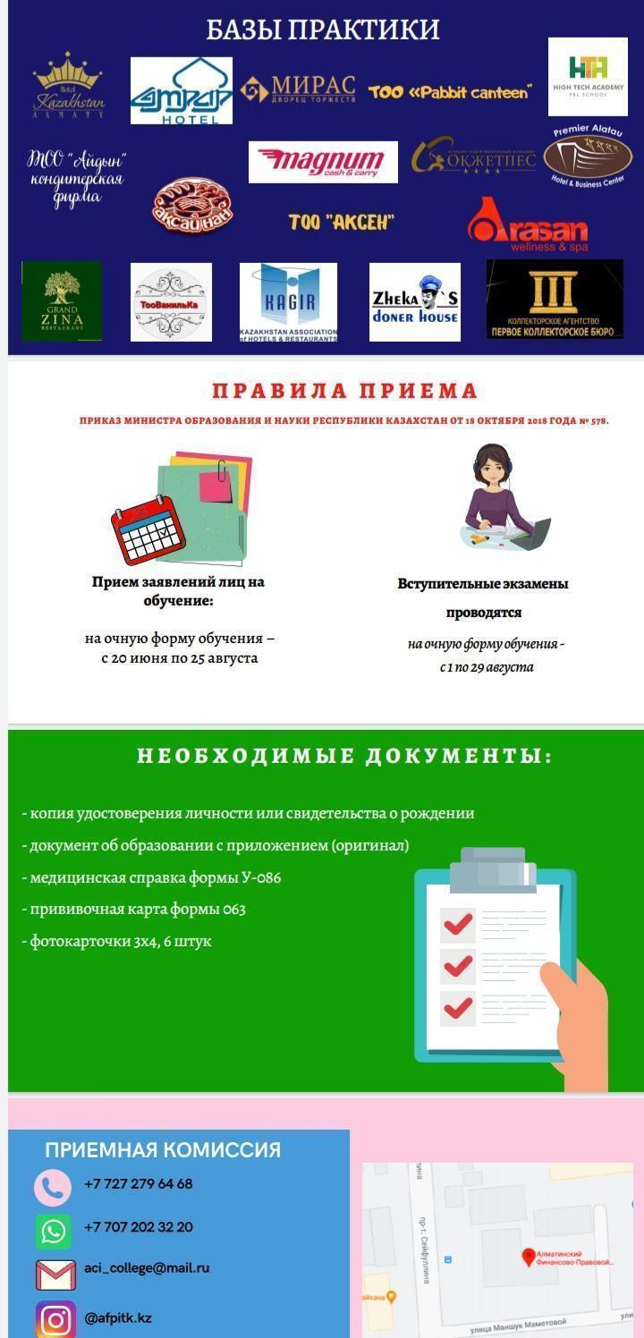 - колледжге түсу шарттары және қабыдау туралы ережелер