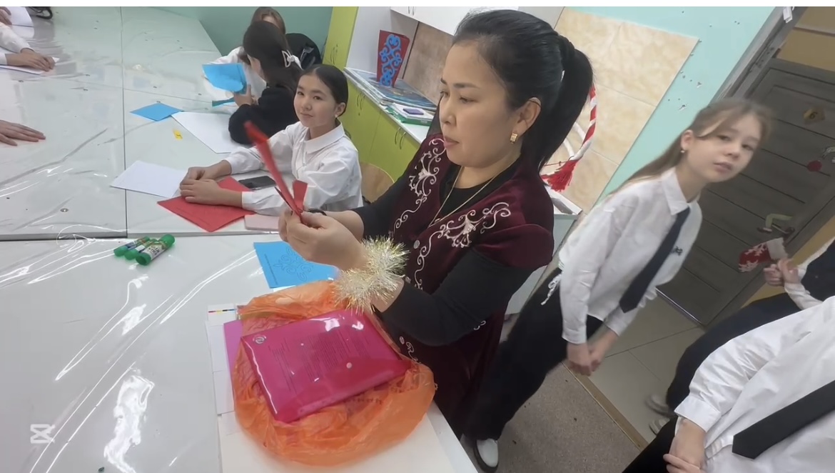 Алматы қаласы, Жетісу ауданы, 110 мектеп—гимназизияда 17 қаңтарда өзге тілде білім алатын оқушылар мемлекеттік тілде қазақтың ұлттық аспаптары , оюлары, ұлттық киімдері, ойындары туралы әңгіме өткізді Мақсатты: қазақша тарихи мәліметтер арқылы, мемлекеттік тілді құрметтеуге, насихаттауға үйрету Ұйымдастырушы 7ж сынып оқушылары мен сынып жетекшісі Тельгазиева Р А