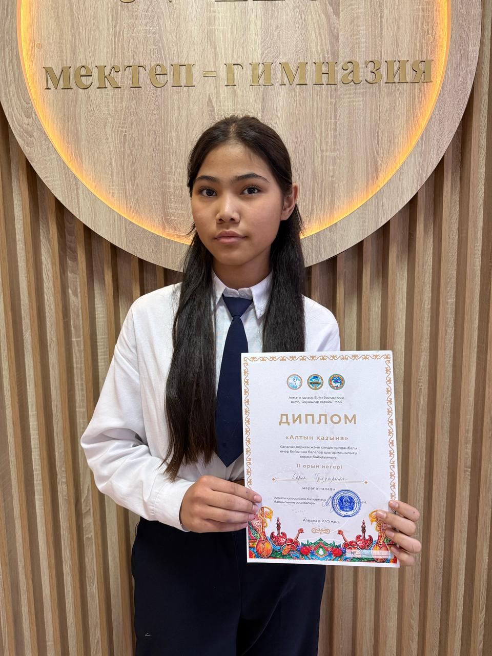 ова Сара ІІІ орын дипломмен марапатталды.Пән мұғалімі Абдуалиева Ұлжан Сейсеновна.