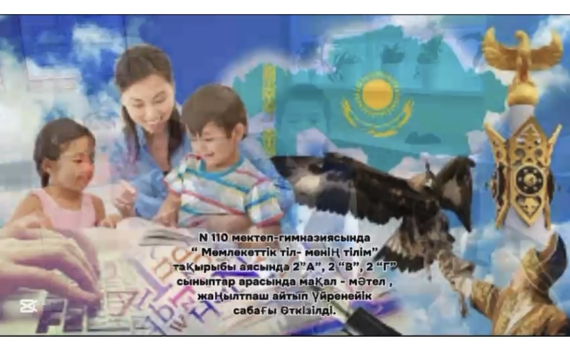 2025 жылдың 13 наурызында N 110 мектеп-гимназиясында “ Мемлекеттік тіл- менің тілім” тақырыбы аясында 2”А”, 2 “В”, 2 “Г” сыныптар арасында мақал - мәтел , жаңылтпаш айтып үйренейік сабағы өткізілді.