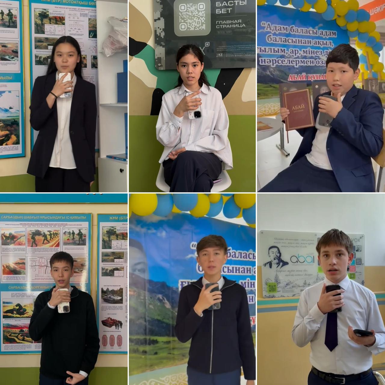 2025 жылдың 22 мамырында 110 мектеп-гимназиясында “ Мемлекеттік тіл- менің тілім” тақырыбы аясында 8”Д” сынып оқушылары қазақтың ұлы ақыны Абай Құнанбайұлының 180 жасқа толуына орай, қара сөздерін, өлеңдерін, нақыл сөздерін жатқа айтты.