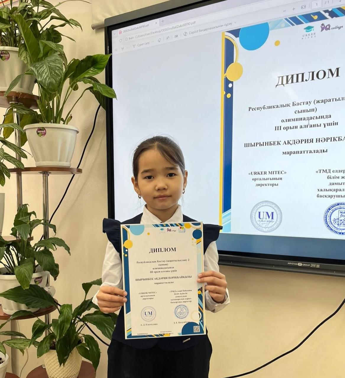 13 ақпан 2026 0 1 2 3 4 5 "Жетістіктеріміз" "Urker Mitec" Зияткерлік орталығы Республикалық "Бастау" олимпиадасы жаратылыстану бағыты бойынша 2 "А" сынып оқушысы Шырынбек Ақдәрия жүлделі ІІІ дәрежелі дипломмен марапатталды.Сынып жетекшісі: Карсыбаева Н.Б.Құттықтаймыз. Осы беттің QR-коды:QR-код этой страницы: