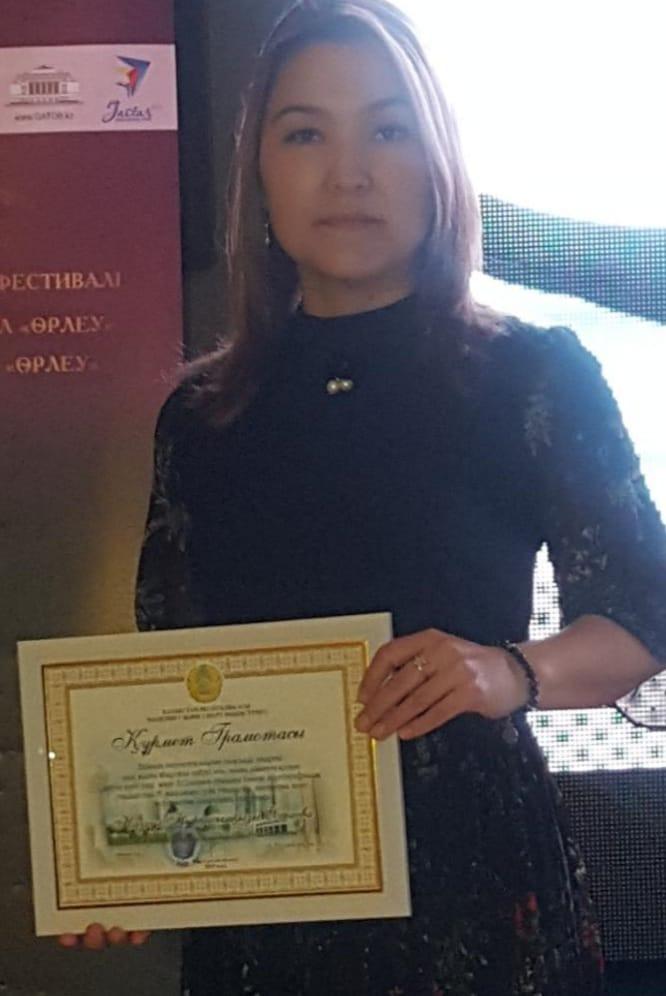 •Почетная Грамота Министра Культуры и Спорта за многолетний добросовестный труд и значительный вклад в развитие социально-культурной сферы страны;