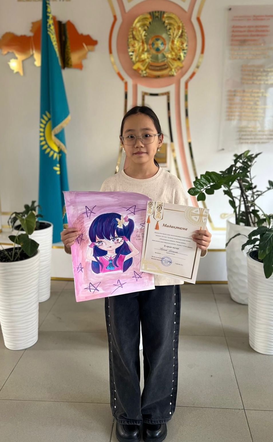 Қалалық білім берудегі жаңа технологиялардың ғылыми-әдістемелік орталығы 2025 жыл жұмысшы мамандықтар жылы аясында "Шығармашылық шеберхана: Бояулар құпиясы" атты қалалық сурет байқауында аудандық кезеңде 2 орын иегері: Ногай Полина.